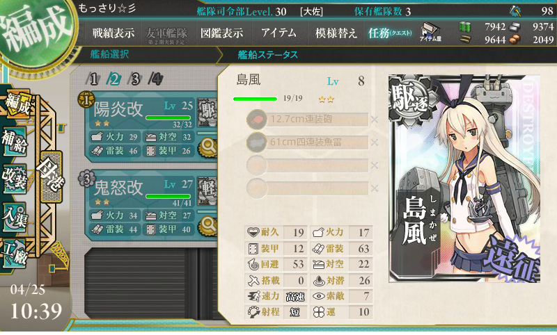 高い資材投資して建造するのがアホらしくなってしまうわね‥(-_-;)