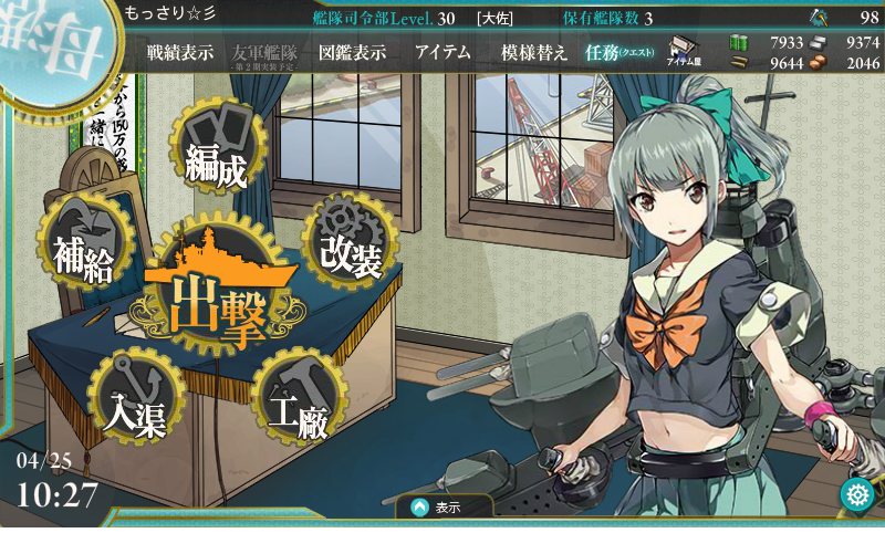 通常海域の攻略が現在2-4-1でひたすらレベリングなので、レアな艦むすが手に入りづらい中、