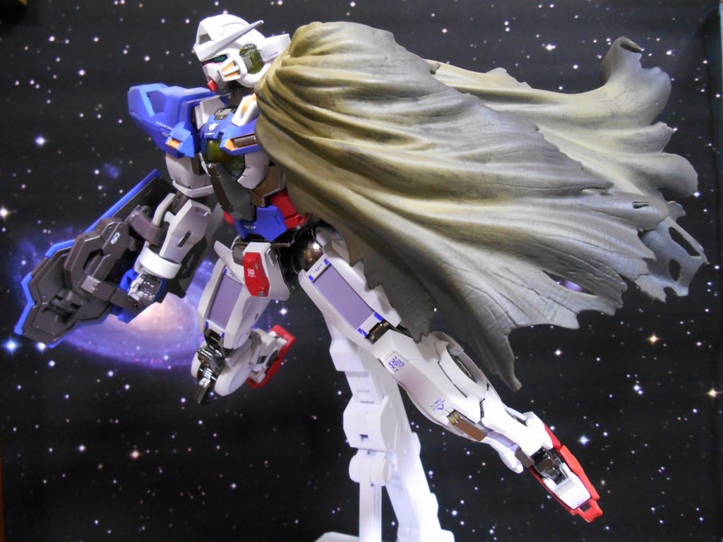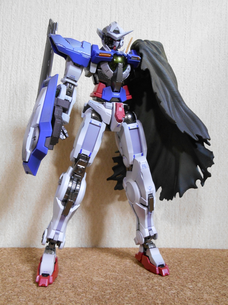 今日は疲れちゃったので、とりあえずGNソードとマント、あと背中にGNドライブを付けて立たせておきました。